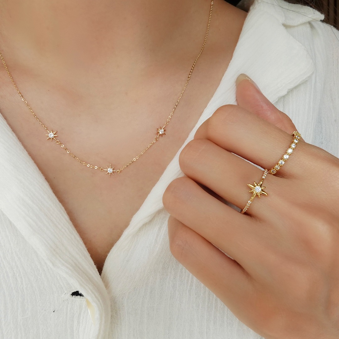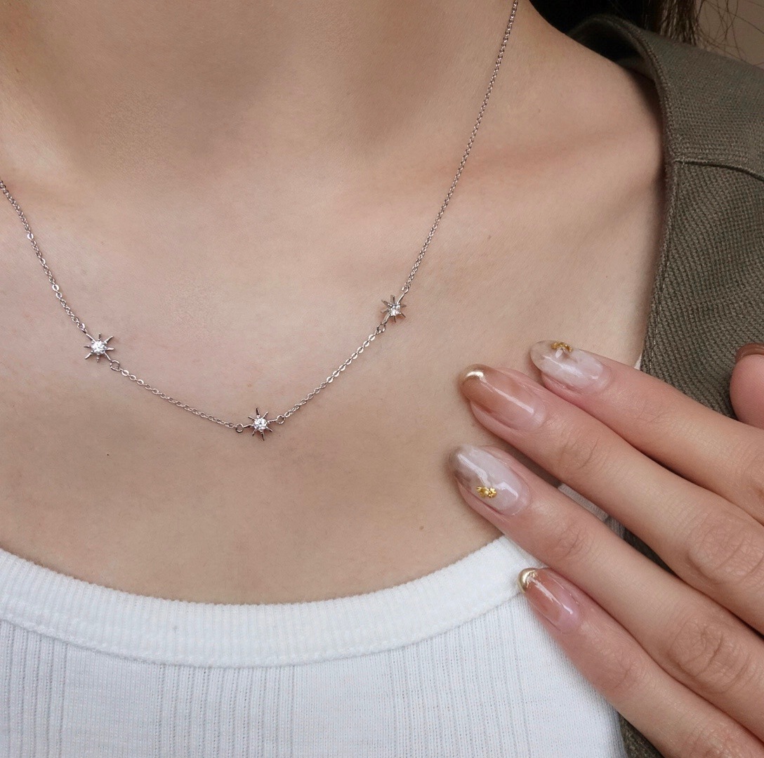 チェーンの間にチャームを挟み、重ね付けにもオススメなシンプルデザイン。