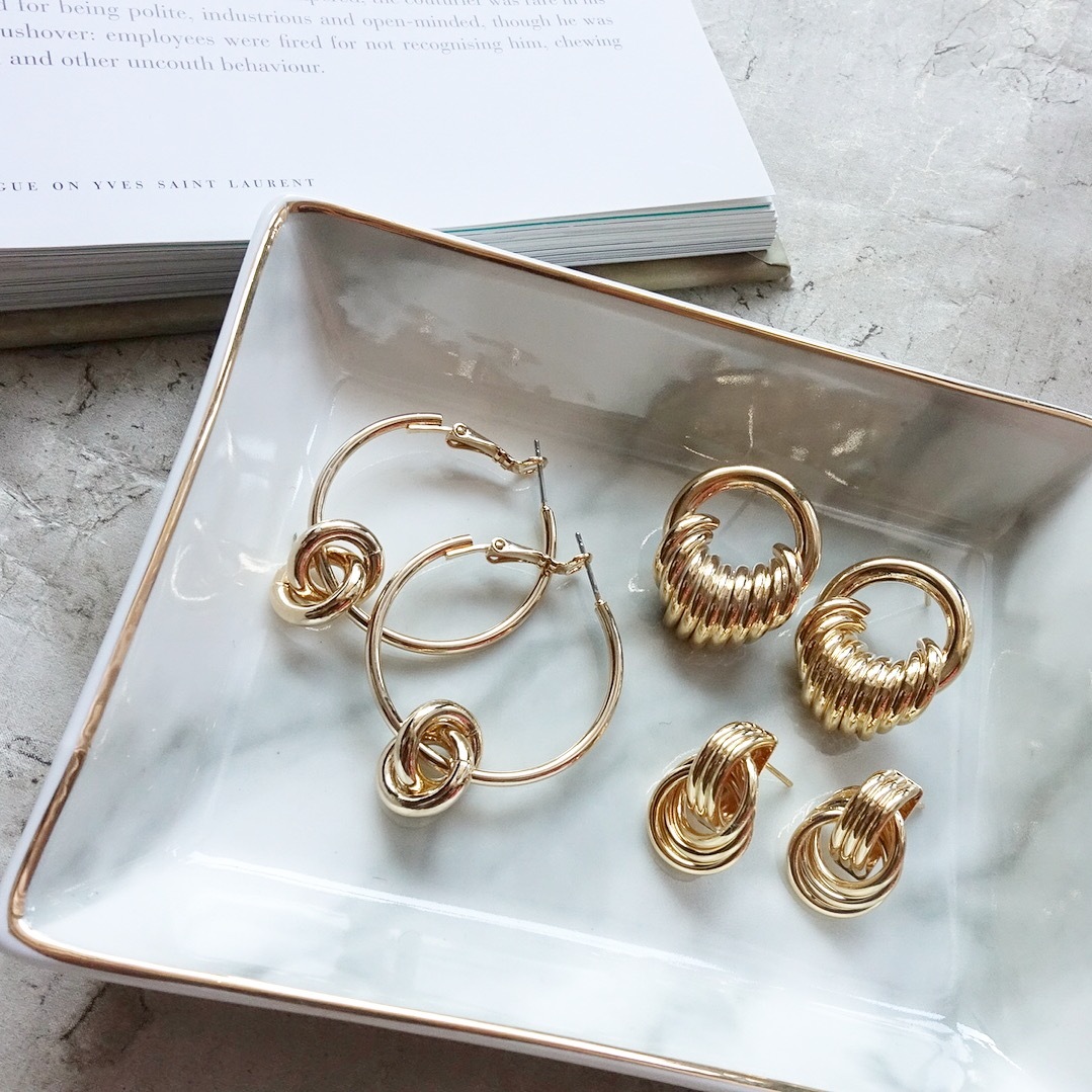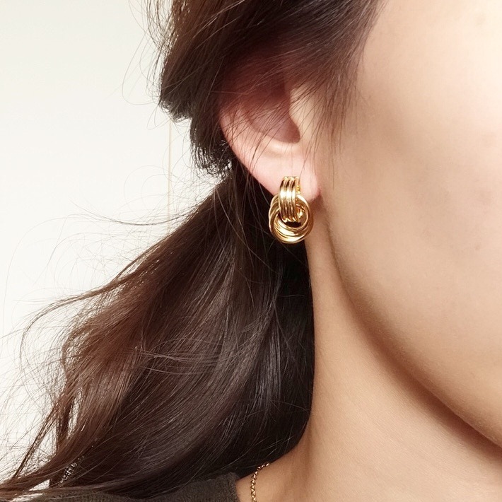 リングを束ねた様な、エレガントでヴィンテージ感のあるイヤリング。