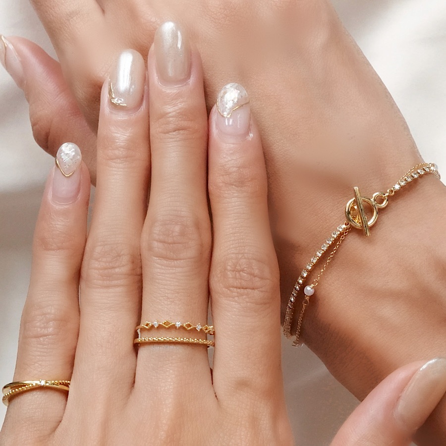 シンプルなクロスデザインに一粒ストーンをセッティング。