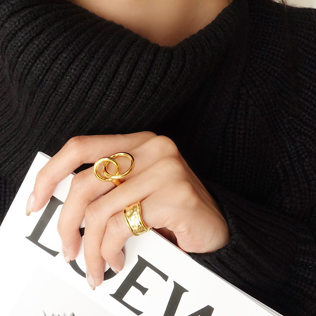 ぷっくりとしたメタルの輝きが印象的なデザイン。