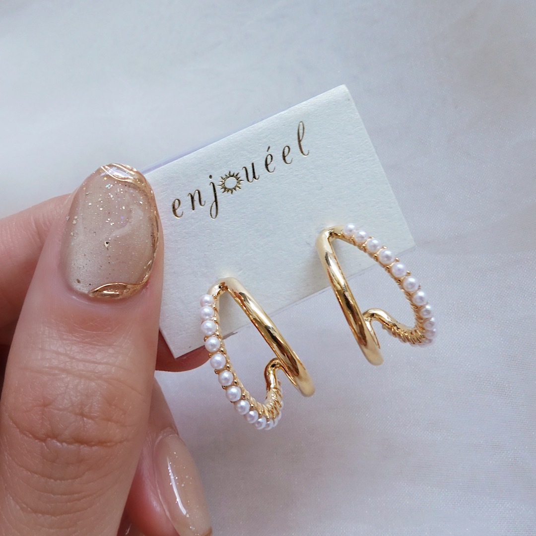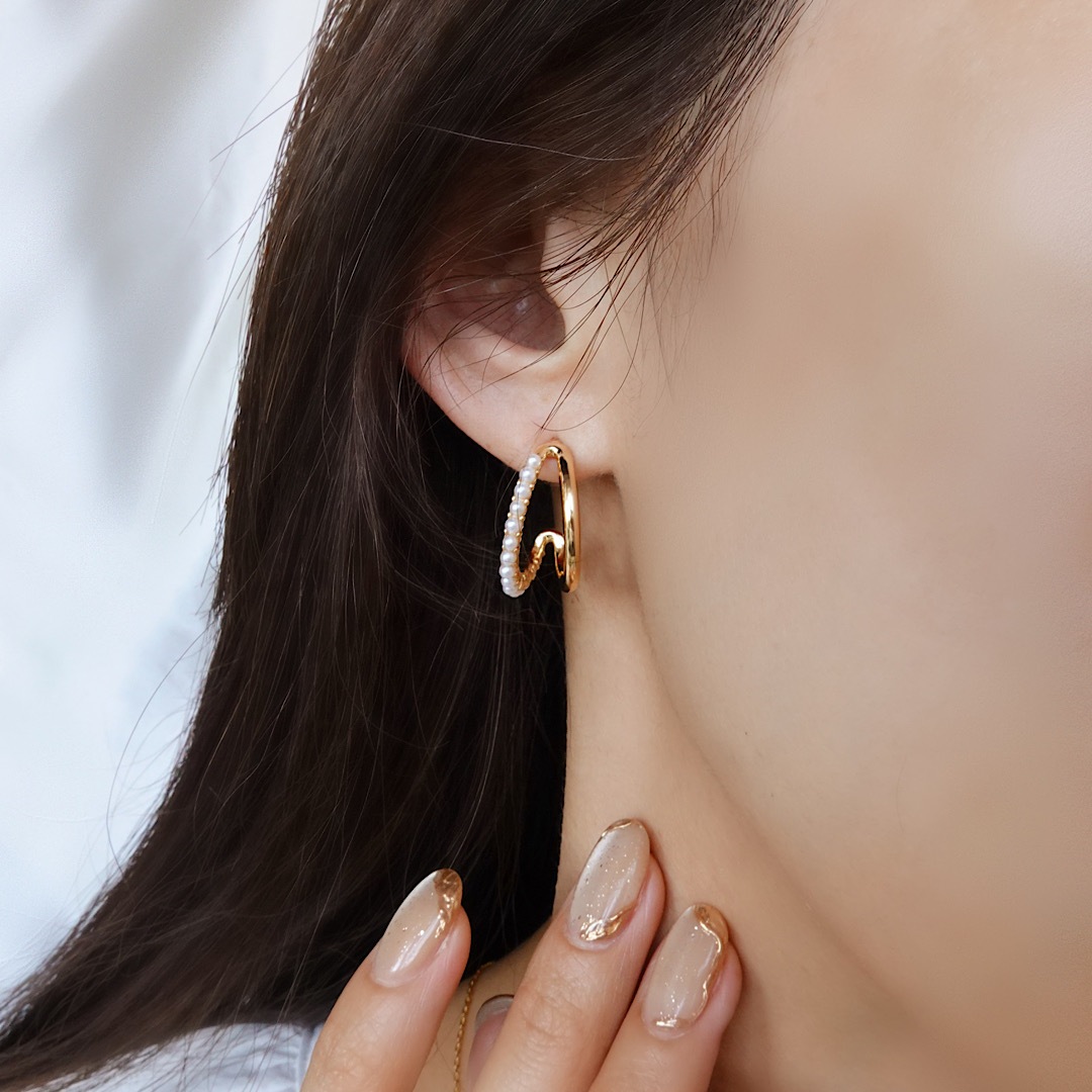 小さなパールが並んだラインは華やかさもあり、オケージョンにもぴったりのデザインです。【厚メッキ】
