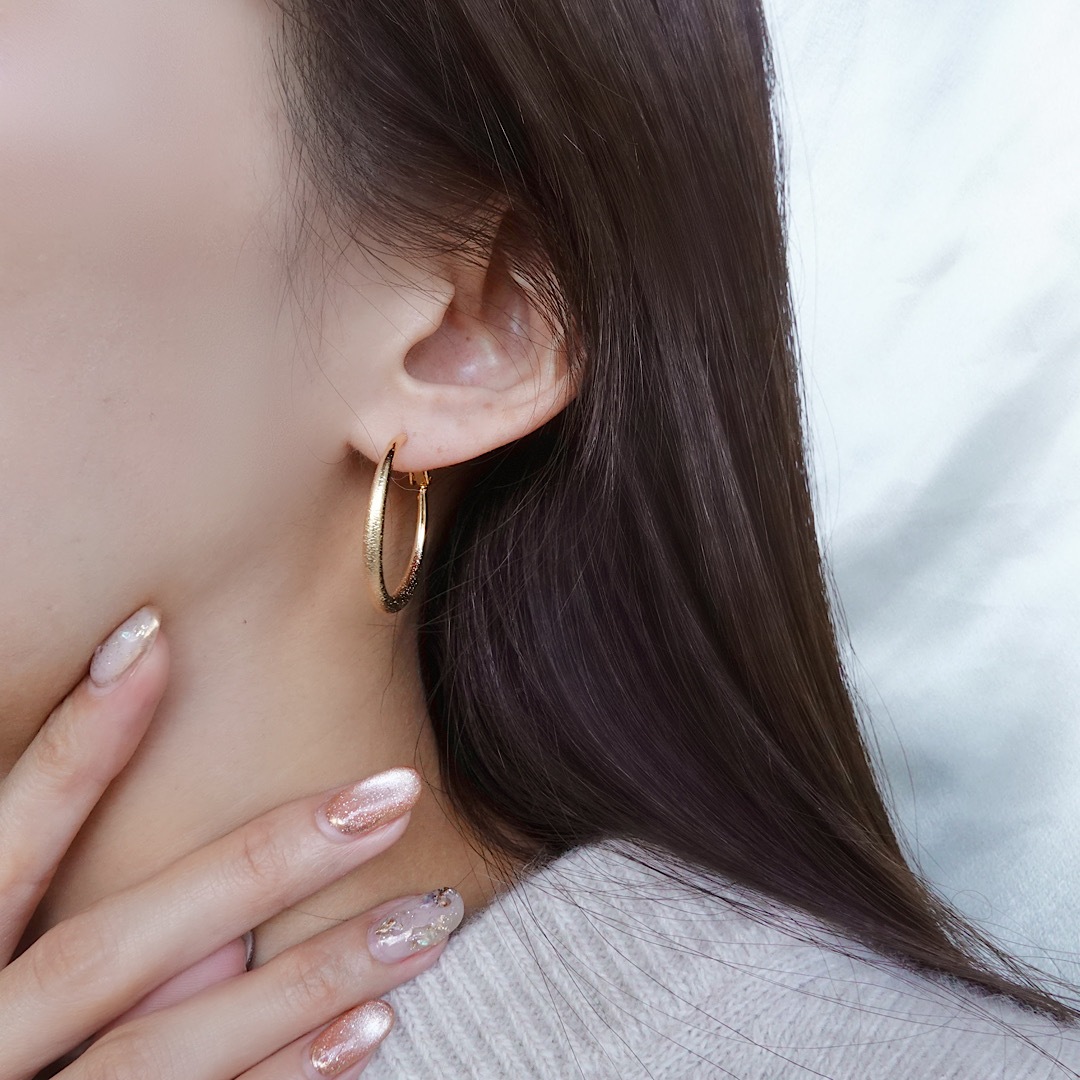 コーデのポイントになるシンプルなフープピアス。