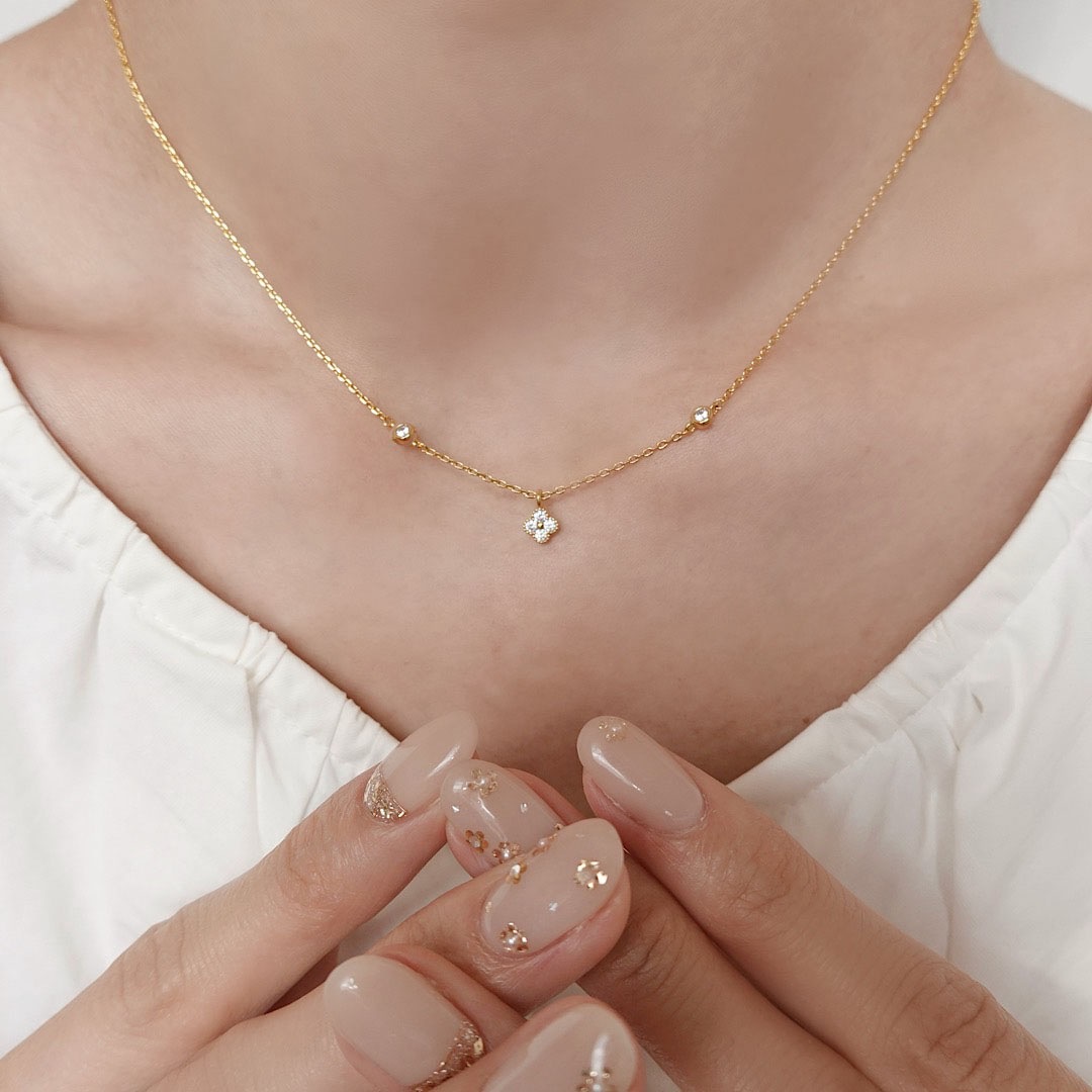 繊細なチェーンに、さりげなくきらめくストーンをセッティングしました。